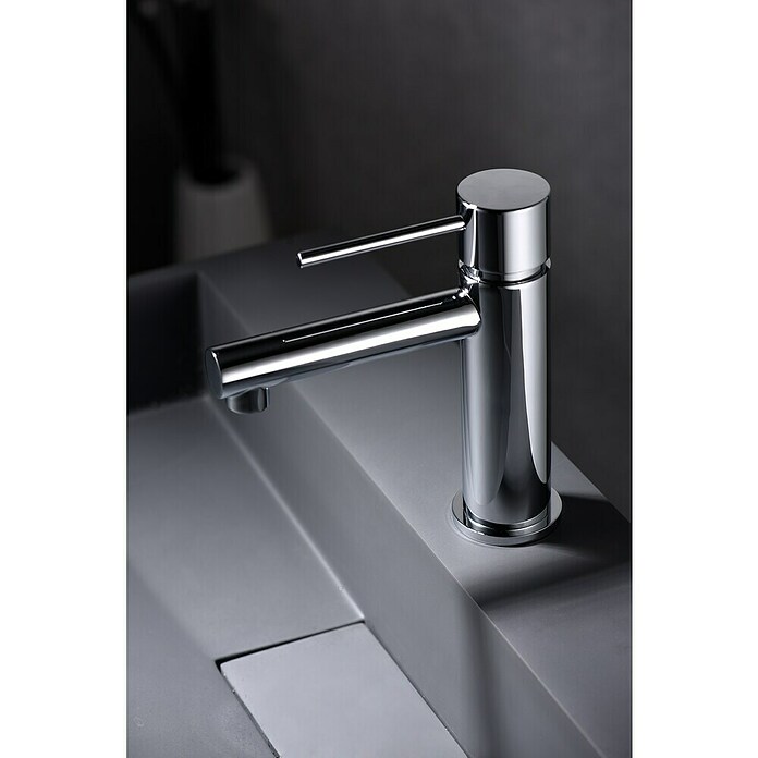 Monomando de lavabo. Fabricado con cuerpo de grifería en latón de alta calidad y equipado con un cartucho cerámico Ø 26 mm. Disponible también en empotrado y en otros acabados.