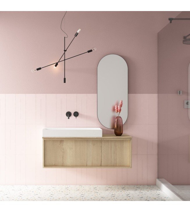 Mueble 2 cajones + encimera. Modelo enmarcado de un cajón. Opción de dos cajones en compacto. Dibujo de la veta en vertical dando un efecto óptico top.